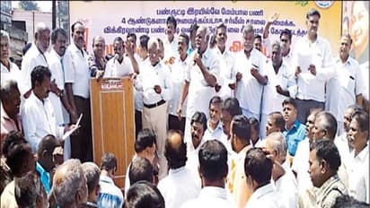 பண்ருட்டியில் இரயில்வே மேம்பால பணியை விரைந்து முடிக்க கோரி 36 சங்கங்களின் நிர்வாகிகள், வியாபாரிகள் ஆர்ப்பாட்டத்தில் ஈடுபட்டனர்.