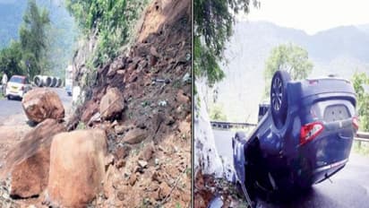 அப்போது மழை காரணமாக மலைப்பாதையில் கிடந்த பாறை மீது கார் மோதி தலைகுப்புற கவிழ்ந்தது. இதில் காரின் இடிபாடுகளில் சிக்கி ஐந்து பேர் காயமடைந்தனர்.