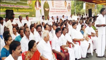 அதன்படி, நேற்று திருவண்ணாமலை மாவட்டத்திலும் அ.தி.மு.க. சார்பில் உண்ணாவிரத போராட்டம் நடந்தது. இந்தப் போராட்டத்துக்கு அ.தி.மு.க. அமைப்பு செயலாளரும், அமைச்சருமான சேவூர் எஸ்.ராமச்சந்திரன் தலைமை தாங்கினார்.