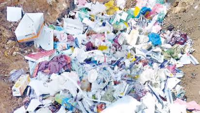 இங்கிருக்கும் மருத்துவமனையில் பயன்படுத்தப்பட்ட ஊசிகள், காயங்களுக்கு கட்டப்படும் துணிகள் உள்ளிட்ட மருத்துவக் கழிவுகளை திறந்த வெளியில் பொது இடங்களில் கொட்டக் கூடாது என்று அரசு ஏற்கனவே உத்தரவிட்டுள்ளது.