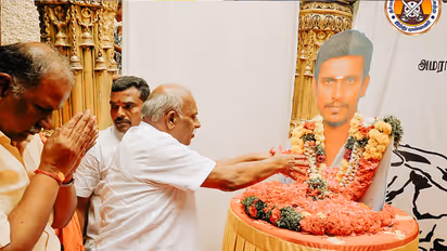 திருப்பரங்குன்றம் மலையில் தீபம் ஏற்ற வலியுறுத்தி உயிரிழந்த பூரண சந்திரன் 16ம் நாள் துக்க அனுசரிப்பு நிகழ்ச்சியில் பங்கேற்ற, இந்து முன்னணியின் மாநில தலைவர் காடேஸ்வரா சுப்ரமணியம் பூர்ண சந்திரன் திருவுருவப்படத்திற்கு மலர் மாலை அணிவித்து மலர் தூவி அஞ்சலி செலுத்தினர் அவரது குடும்பத்தினரை சந்தித்து ஆறுதல் தெரிவித்தார்.