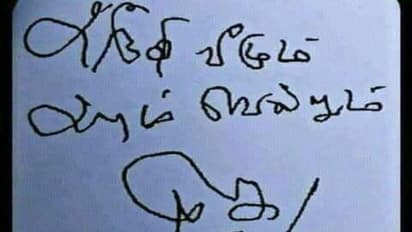 திமுக தலைவர் கருணாநிதி அவர்கள், "அநீதி வீழும் அறம் வெல்லும்” என தன் கையால் எழுதி மகிழ்ச்சியை வெளிப்படுத்தி உள்ளார்
