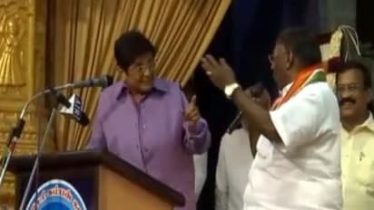 நீ பாதி - நான் பாதி...! மேடையில் கிரண்பேடி நாராயணசாமி ஒரே கொஞ்சல்ஸ்..!