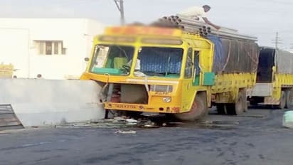 நாமக்கல்லில் பிளாஸ்டிக் குழாய்களை ஏற்றி வந்த லாரி, எதிர்பாராத விதமாக தடுப்புச் சுவரில் மோதி சொருகியதில், லாரி ஓட்டுநருக்கு பலத்த காயம் ஏற்பட்டு தீவிர சிகிச்சைக்காக மருத்துவமனையில் அனுமதிக்கப்பட்டு உள்ளனர்.