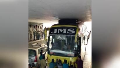 பாலத்தின் மேற்கூரையை எடுத்தால் மட்டுமே பேருந்தை வெளியே எடுக்க முடியும் என்று கூறப்படுகிறது. இதனை அடுத்து, போக்குவரத்து போலீசாரும், ஊழியர்களும், பேருந்தை மீட்கும் பணியில் தொடர்ந்து ஈடுபட்டு வருகின்றனர். இந்த நிலையில், பேருந்தை உடைத்து அகற்றும் பணியில் போலீசாரும், ஊழியர்களும் ஈடுபட்டு வருகின்றனர்.