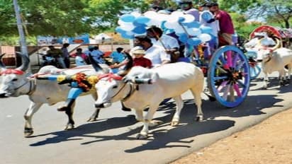 முன்னதாக எனது வீட்டில் வளர்த்த காளைகளை வண்டியில் பூட்டி ஊர்வலமாக சுமார் ஆறு கிலோ மீட்டர் சென்றோம். பழங்காலத்து பாரம்பரிய சம்பவத்தை மக்களுக்கு நினைவுக்கூரும் முயற்சியாகவும் இது அமைந்தது” என்று அவர் கூறினார்.