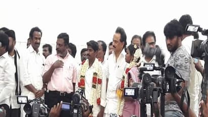 காவிரி மேலாண்மை வாரியத்திற்காக நடந்த போராட்டத்தில் பங்கேற்ற விடுதலை சிறுத்தைகள் கட்சியின் தொண்டர் இளம்பெண் - இளைஞர் திருமணத்தை கைது செய்து அடைத்து வைக்கப்பட்ட திருமண மண்டபத்திலேயே திருமணம் செய்துவைத்தார் ஸ்டாலின்.