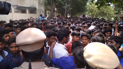 இன்று வழக்கம்போல் வகுப்புகள் தொடங்கி நடைபெற்று வந்தன. இந்த நிலையில், திடீரென மாணவர்கள் ஒன்று திரண்டனர். அப்போது அவர்கள், இலவச பேருந்து பாஸ் வழங்க அவர்கள் வலியுறுத்தினர். கல்லூரி தொடங்கிய நாட்களில் இருந்தே இலவச பேருந்து பாஸ் வழங்கப்படவில்லை என்று கூறப்படுகிறது.
