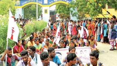 அரியலூர் மாணவி அனிதா மரணத்திற்கு காரணமான மத்திய, மாநில அரசுகளைக் கண்டித்தும், நீட் தேர்வை நிரந்தரமாக ரத்து செய்ய வேண்டும் என்று வலியுறுத்தியும் தூத்துக்குடி வ.உ.சி. கல்லூரியில் வகுப்புகளைப் புறக்கணித்து மாணவர்கள் போராட்டத்தில் ஈடுபட்டனர்.