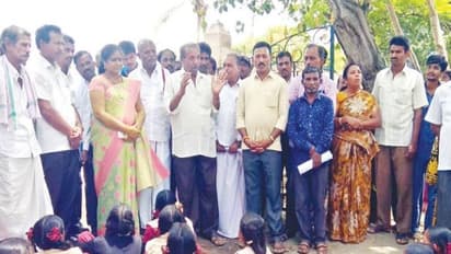 அப்போது மாணவ, மாணவிகள், "பள்ளியின் தலைமை ஆசிரியை ராஜலட்சுமியை இடமாற்றம் செய்ய வேண்டும், கூடுதலாக ஆசிரிய, ஆசிரியைகள் நியமிக்க வேண்டும்" என்று வலியுறுத்தினர்.