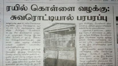 கடந்த ஆண்டு ஜூலை 8 ஆம் தேதி, ரூ.323 கோடி பழைய ரூபாய் நோட்டுகளை, சேலத்தில் இருந்து சென்னைக்கு சென்ற விரைவு ரயிலில் எடுத்து செல்லப்பட்டது. அப்போது ரயில் பெட்டியில் ஓட்டை போட்டு ரூ.5.78 கோடி பழைய ரூபாய் நோட்டுகள் கொள்ளையடிக்கப்பட்டது.