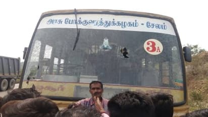 இந்நிலையில், கிருஷ்ணகிரி மாவட்டம் சூளகிரி அருகே கோப சந்திரம் என்ற இடத்தில் அரசு பேருந்து கண்ணாடியை கல் வீசி உடைத்து விட்டு அரசு பேருந்து ஓட்டுனர் ஒருவர் தப்ப முயன்றுள்ளார்.