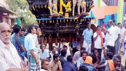 திருவிழாவின்போது காவல்துறை செய்த கெடுபிடியாலும், கைது செய்யப்பட்ட 34 அடியார்களை விடுவிக்க கோரியும் பணகுடி ராமலிங்க சுவாமி கோவில் தேரை அடியார்கள் இழுத்து நடுரோட்டில் நிறுத்தி போராட்டத்தில் ஈடுபட்டனர்.