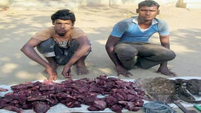 இவர்கள் இரண்டு பேரும் வனப்பகுதியில் மானை வேட்டையாடியதை ஒப்புக் கொண்டதால் அவர்கள் இருவரையுன்ம் வனத்துறையினர் கைது செய்தனர். அவர்களிடம் இருந்து 20 கிலோ மான் கறி, கத்தி, கம்பி வலை ஆகியவற்றை கைப்பற்றினர்.
