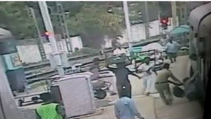 ஓடும் ரயிலில் ஏற முயன்றபோது தவறி விழுந்த வடமாநில இளைஞரை, ரயில்வே போலீசார் ஒருவர் சாமர்த்தியமாக காப்பாற்றிய சம்பவம் சென்னை எழும்பூர் ரயில் நிலையத்தில் நடந்துள்ளது.