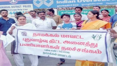 அதேபோன்று, நாமக்கல்லில் ஆட்சியர் அலுவலகம் முன்பு இவர்கள் ஆர்ப்பாட்டம் நடத்தினர். இந்த ஆர்ப்பாட்டத்திற்கு புதுவாழ்வுத் திட்ட மாவட்டத் தலைவர் பேபி பிரிஸ்கில்லா தலைமை வகித்தார்.