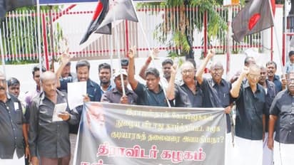 ஜனாதிபதியின் சாதியை காரணம் காட்டி கோயிலுக்குள் செல்ல அனுமதிக்க மறுத்ததை கண்டித்து கிருஷ்ணகிரியில் திராவிடர் கழகத்தினர் கண்டன ஆர்ப்பாட்டத்தில் ஈடுபட்டனர்.