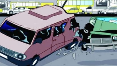 சுங்குவார்சத்திரம் பஸ் நிலையத்தில் பணியளார் ஒருவரை ஏற்றுவதற்காக வேன் திடீரென நிறுத்தப்பட்டது. இதனால், பின்னால் வந்த தனியார் கம்பெனி பஸ் வேன் மீது பயங்கரமாக மோதியது.