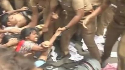 போலீசார் மாணவர்களை கைது செய்ய முயன்ற போது மாணவர்கள் எதிர்ப்பு தெரிவித்ததால் பரபரப்பு ஏற்பட்டது. இதைத் தொடர்ந்து போராட்டத்தில் ஈடுபட்டவர்களை போலீசார் வலுக்கட்டாயமாக தூக்கி சென்று கைது செய்து வேனில் ஏற்றினர்.