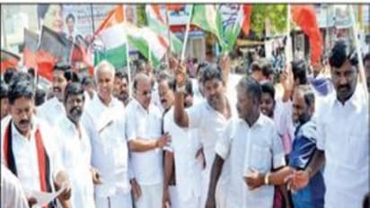 இதேபோன்று, திருப்பத்தூர் பேருந்து நிலையம் முன்பாக, வடக்கு ஒன்றியச் செயலர் விராமதி மாணிக்கம் தலைமையில் திமுகவினர் சாலை மறியலில் ஈடுவட்டனர்.