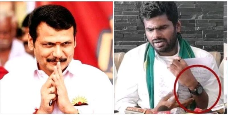 கோவையில் பாஜக மாநில தலைவர் அண்ணாமலை சமீபத்தில் செய்தியாளர்களுக்கு பேட்டியளித்தார். அப்போது பேசிய அவர், சமீபகாலமாக அரசியலில்வாதிகளின் உடை, பயன்படுத்தும் பொருட்கள் விமர்சனத்திற்குள்ளாகி வருகிறது. கையில் கட்டி இருக்கும் வாட்ச் 3.5 லட்ச ரூபாய். ரபேல் விமானத்தின் மூலப் பொருட்களைக் கொண்டு இந்த வாட்ச் தயாரித்தார்கள். மொத்தம் 500 வாட்சுகள் நாட்டில் இருக்கின்றன. ரபேல் விமானம் ஓட்டக் கூடிய பாக்கியம் கிடைக்கவில்லை. அதன் பாகத்தில் இருக்கும் இந்த வாட்சை கட்டி இருக்கிறேன்.