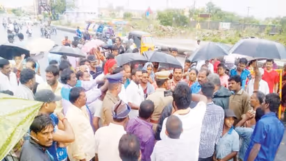 செட்டிகுளமேடு ரேணுகாம்பாள் கோவில் அருகே வேலூர் சாலையில் மறியலில் ஈடுபட்டபோது அவர்கள் கிரிவல நாள்களில் காவலாளர்கள் பயன்படுத்தும் சாலை தடுப்புகளை சாலையின் நடுவில் வைத்து மறியலில் ஈடுபட்டனர்.