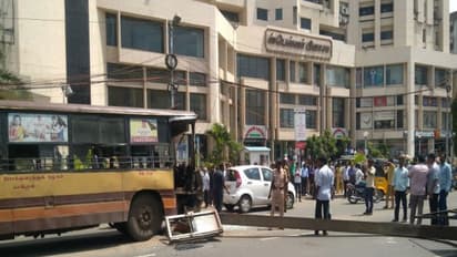 சென்னை, மேற்கு சைதாப்பேட்டையில் இருந்து 18K மாநகரப் பேருந்து பிராட்வே நோக்கி சென்று கொண்டிருந்தது. ஸ்பென்சர் பிளாசா அருகே கொண்டிருந்த இந்த பேருந்தை, பைக் ஒன்று முந்திச்செல்ல முயன்றுள்ளது.