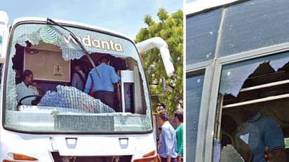 அங்கு திரண்டிருந்த ஸ்டெர்லைட் எதிர்ப்பாளர்கள் அந்த பேருந்தை வழிமறித்து முற்றுகையிட்டு போராட்டம் நடத்தினர். அப்போது திடீரென பேருந்து கல்வீசி தாக்கப்பட்டது.