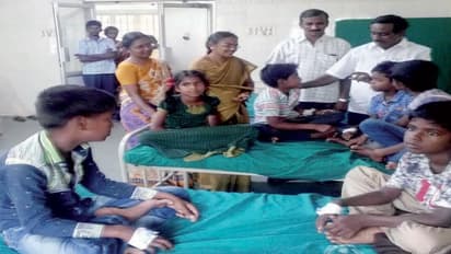 இதனிடையே மருத்துவமனையில் சிகிச்சை பெற்று வரும் மாணவ, மாணவிகளை முதன்மை கல்வி அலுவலர் ஞானகவுரி, மாவட்ட தொடக்கக் கல்வி அலுவலர் பிருத்திவிராஜ், உதவி தொடக்கக்கல்வி அலுவலர் ராஜேஷ்கண்ணா, கூடுதல் தொடக்கக்கல்வி அலுவலர் வாசுகி ஆகியோர் நேரில் சந்தித்து நலம் விசாரித்தனர்.