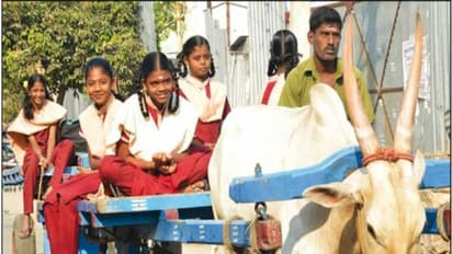 ஈரோடு கருங்கல்பாளையம் பகுதியில் பேருந்துகள் ஓடாததால் மாணவ – மாணவிகள் சிலர் மாட்டு வண்டிகளில் பள்ளிக்கூடத்திற்குச் சென்றனர்.