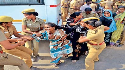 அதற்கு காவலாளர்கள் மறுப்பு தெரிவித்தது மட்டுமல்லாமல், பா.ஜ.க. மாநில துணை தலைவர் சுப.நாகராஜன் தலைமையில் காவலாளர்கள், கிராம மக்களை சுற்றி வளைத்து 59 பெண்கள் உள்பட 95 பேரை கைது செய்தனர். அப்போது காவலாளர்கள் வலுகட்டாயமாக வாகனத்தில் ஏற்றியபோது நஜ்மா என்ற மூதாட்டி கீழே விழுந்ததால் அங்கு பரபரப்பு ஏற்பட்டது.