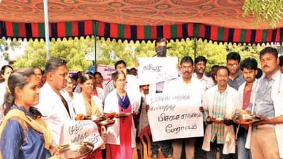 அனைத்து வகையான பணி அமர்த்தல்களை கட்டாய கிராமப்புற சேவையில் இருந்து தொடங்க வேண்டும்" உள்ளிட்ட பல்வேறு கோரிக்கைகளை வலியுறுத்தி தமிழகம் முழுவதும் அரசு மருத்துவ கல்லூரி பட்டமேற்படிப்பு மாணவர்கள் காலவரையற்ற வேலை நிறுத்த போராட்டத்தில் ஈடுபட்டு வருகின்றனர்.