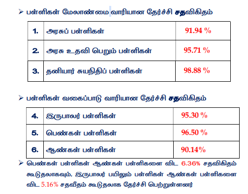 மாணவர்கள் தேர்ச்சி விகிதல் பற்றிய கூடுதல் விபரம்