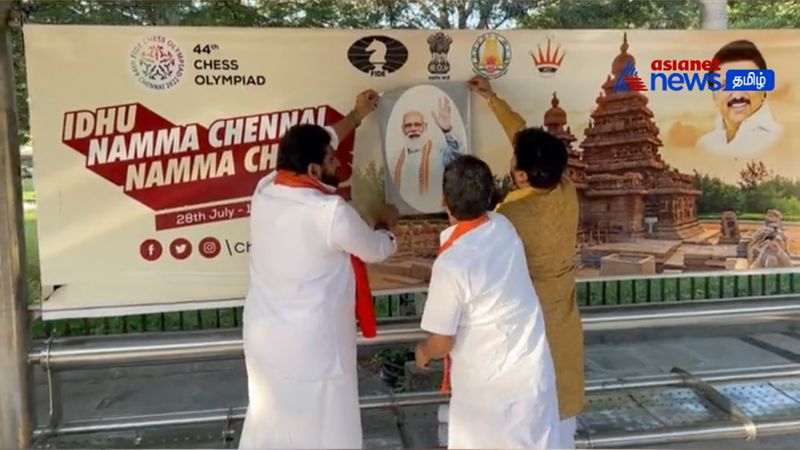இந்தநிலையில் சென்னையில் நடைபெறும் செஸ் ஒலிம்பியாட் போட்டியை விளம்பரம் படுத்தும் வகையில் தமிழகத்தில் பல்வேறு இடங்களில் செஸ் போட்டிகள், விளம்பரங்கள் செய்யப்பட்டுள்ளன. மேலும் சென்னையில் பல்வேறு இடங்களில் கட் அவுட்கள் தமிழக அரசு சார்பாக வைக்கப்பட்டுள்ளது. ஆனால் இதில் எந்த இடத்திலும் பிரதமர் மோடியின் படங்கள் இடம்பெறாதது பாஜகவினரை அதிர்ச்சி அடையவைத்துள்ளது. இதனையடுத்து பாஜக நிர்வாகி அமர் பிரசாத் ரெட்டி, ஒலிம்பியாட் செஸ் போட்டி போஸ்டர் ஒட்டப்பட்ட இடத்தில் பிரதமர் மோடியின் படத்தை தனியாக ஒட்டி வருகிறார். இந்த காட்சி சமூக வலை தளத்தில் பரவி பரபரப்பை ஏற்படுத்தியுள்ளது.