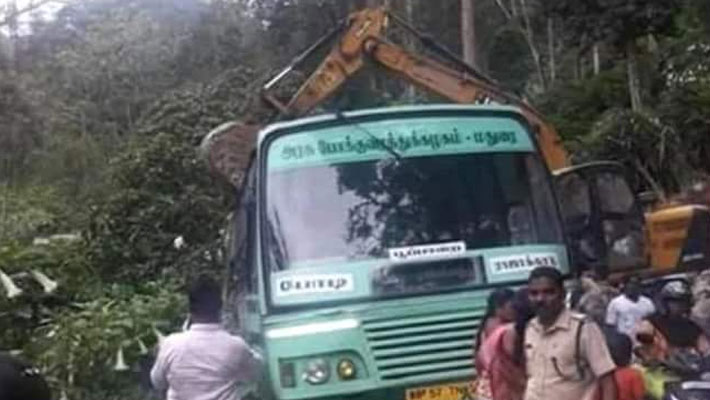 கேரளாவில் தமிழ்நாடு அரசு பேருந்து கவிழ்ந்து விபத்துக்குள்ளானது. இந்த பேருந்து பள்ளத்தில் கவிழும் நிலையில் இருந்த போது ஜேசிபியால் தடுத்து நிறுத்தி 80 உயிர்களை காப்பாற்றிய இளைஞருக்கு பாராட்டுகள் குவிந்த வண்ணம் உள்ளன.
