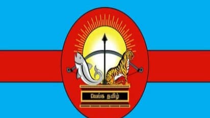 இந்த கொடி நீல வண்ணம் கொண்டுள்ளது. மூவேந்தர்களான சேர, சோழ, பாண்டியர்களின் கொடிகளில் இடம்பெற்றுள்ளது, வில்-அம்பு, புலி, மீன் ஆகியவை இக்கொடியின் நடுவே உள்ளது. சிவப்பு வண்ணம் ஒன்று குறுக்கே செல்வதை போல இந்த கொடியில் அமைந்துள்ளது.