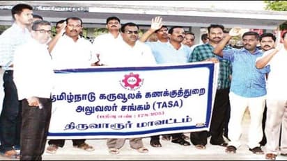 திருவாரூர் மாவட்ட கருவூல அலுவலகம் முன்பு தமிழ்நாடு கருவூல கணக்குத்துறை அலுவலர்கள் சங்கத்தினர் ஆர்ப்பாட்டம் நடத்தினர்.
