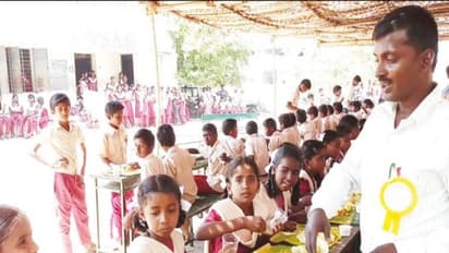 திருச்சியில் உள்ள அரசு மேல்நிலைப் பள்ளியில் பொதுத்தேர்வு எழுதவுள்ள மாணவ - மாணவிகளுக்கு ஆசிரியர்கள் அறுசுவை உணவு விருந்து அளித்தனர்.