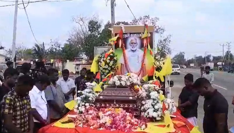 முன்னாள் பிரதமர் ராஜீவ் காந்தி கொலை வழக்கில் குற்றம் சாட்டப்பட்டு 33 ஆண்டுகள் சிறைத் தண்டனை அனுபவித்து அதிலிருந்து விடுதலையாகி ஒன்றரை ஆண்டுகள் திருச்சி சிறப்பு முகாமில் அடைத்து வைக்கப்பட்டிருந்த சாந்தன். கடந்த வாரம் உடல்நிலை பாதிக்கப்பட்டு உயிரிழந்தார். இவரது உடல் விமானம் மூலம் இலங்கைக்கு அனுப்பி வைக்கப்பட்ட நிலையில். அங்கு பல்வேறு கட்ட அனுமதிக்கு பிறகு வவுனியா, மாங்குளம் மற்றும் கிளிநொச்சியில் மக்கள் அஞ்சலிக்கு சாந்தன் உடல் வைக்கப்பட்டது.