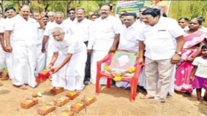 பாலத்துக்கான அடிக்கல்லை நட்டுவைத்து கட்டுமானப் பணியைத் தொடக்கி வைத்த தமிழக வேளாண்துறை அமைச்சர் இரா.துரைக்கண்ணு .