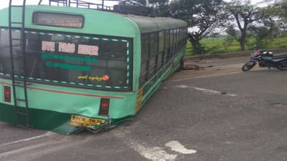 வேகமாக வந்த பேருந்திற்கு பிரேக் அடித்ததில் சக்கரம் பேருந்தை விட்டு கழன்று ஓடியது. இதில், தரையில் உரசிய படியே சென்ற பேருந்து சாலையின் ஓரத்தில் இருந்த மேட்டுப் பகுதியில் மோதி நின்றது. இந்த விபத்தில் பேருந்தின் ஓட்டுநர் கண்ணாடி உடைத்துக் கொண்டு கீழே விழுந்ததில் சம்பவ இடத்திலேயே பரிதாபமாக உயிரிழந்தார்.