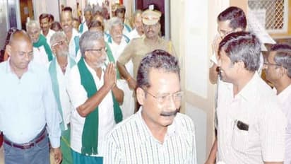 அதன்படி, நேற்று 10-வது மாவட்டமாக கரூருக்கு ஐயாக்கண்ணும், அவருடன் விவசாயிகளும் வந்தனர். அவர்கள் கரூர் ஆட்சியர் அன்பழகனை சந்தித்து கோரிக்கை மனு ஒன்றை அளித்தனர்.