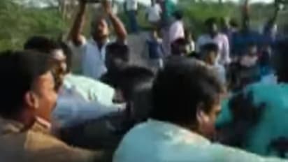 அப்பகுதியில் உச்சகட்ட பரபரப்பு நிலவியதால் ஏராளமான அதிரடிப்படையினர் குவிக்கப்பட்டனர். இதைதொடர்ந்து கிராம மக்கள் போலீசாரின் வாகனங்கள் மீது கல் வீசியதால் போலீசார் தடியடி நடத்தி அவர்களை கலைக்க முயற்சி மேற்கொண்டுள்ளனர்.