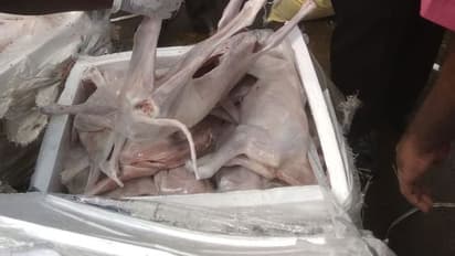 கடந்த 18 ஆம் தேதி ராஜஸ்தான் மாநிலம் ஜோத்பூரில் இருந்து சென்னை வந்தடைந்த மண்ணை எக்ஸ்பிரஸ் ரயிலில் 20 பெட்டிகள் பார்சல் வந்தது. அதனை சோதனை செய்த உணவு பாதுகாப்புத்துறை அதிகாரிகள் அது நாய்க்கறி என கண்டறிந்து சென்னை கொடுங்கையூரில் அதனை ஒரே இடத்தில் கொட்டி எரித்தனர்.