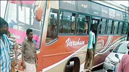 பேருந்து நடுசாலையிலேயே நின்றதால் வாகனங்கள் செல்ல வழியில்லாமல் சாலையின் இருபக்கமும் வாகனங்கள் வரிசைக்கட்டி நின்றன.