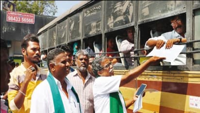 விவசாய பாதுகாப்பு குறித்த துண்டு பிரசுரங்களை பேருந்து பயணிகள் மற்றும் மக்களிடம் தேசிய தென்னிந்திய நதிகள் இணைப்பு விவசாயிகள் சங்கத்தின் மாநில தலைவர் ஐயாக்கண்ணு மற்றும் விவசாயிகள் நேற்று வழங்கினர்.