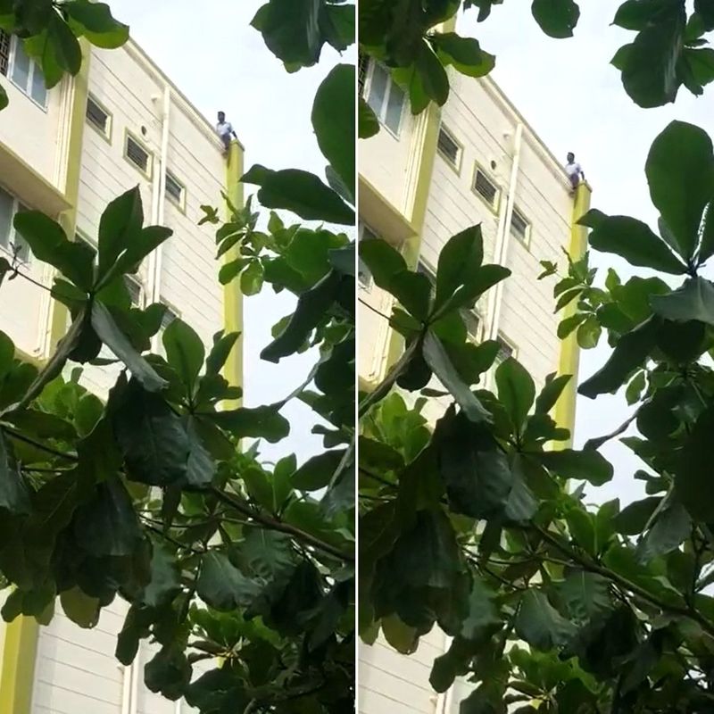 இதனால் பெரும் பரபரப்பு ஏற்பட்டது மருத்துவமனை ஊழியர்கள், மருத்துவர்கள்,நர்ஸ்கள் என அனைவரும் அவ்விடத்தில் திரண்டனர். சுமார் ஒரு மணி நேரத்திற்குப் பின் அவருடன் பணியாற்றும் சக ஊழியர்கள், மற்றும் காவல்துறையினர் மேலே ஏறிப் போய் அவரிடம் நைசாக பேச்சு கொடுத்து அவரை பத்திரமாக மீட்டனர். பின்னர் மருத்துவக் கல்லூரி முதல்வர் அறைக்கு கொண்டு செல்லப்பட்ட அவரிடம் நிலைய மருத்துவர் ராதா தற்போது விசாரணை மேற்கொண்டு வருகிறார். இதனால் தேனி அரசு மருத்துவக்கல்லூரி மருத்துவமனை பரபரப்பு ஏற்பட்டது.