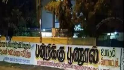 இதற்கு எதிர்ப்பு தெரிவிக்கும் விதமாக, பெரியார் திராவிடர் கழகத்தை சேர்ந்தவர்கள் பன்றிக்கு பூணூல் அணிவித்து, பெரும் பரபரப்பை ஏற்படுத்தினர். இதையொட்டி போலீசார் அவர்களை கைது செய்தனர்.