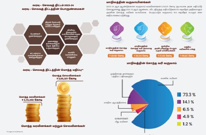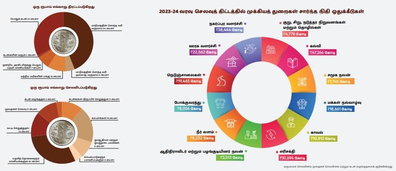தமிழ்நாடு அரசின் ஒவ்வொரு ரூபாய்க்குமான வரவு- செலவு கையேடு குடிமக்களுக்காக வெளியிடப்பட்டுள்ளது. 2023-24 ஆம் ஆண்டுக்கான நிதிநிலை அறிக்கையை நிதியமைச்சர் பழனிவேல் தியாகராஜன் நேற்று (20.03.2023) தாக்கல் செய்தார். இந்த நிலையில் பட்ஜெட் தாக்கலுக்குப் பிறகு தமிழக அரசின் ஒவ்வொரு ரூபாய்க்குமான வரவு- செலவு கையேடு குடிமக்களுக்காக வெளியிடப்பட்டுள்ளது. அதில்,