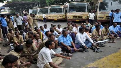 இதையொட்டி சென்னை அண்ணா சாலை பல்லவன் இல்லம் அருகே போக்குவரத்து தொழிலாளர்கள் போராட்டத்தில் ஈடுபட்டுள்ளனர். அருகில் உள்ள சென்ட்ரல் போக்குவரத்து பணிமனையை சேர்ந்த அனைத்து பஸ்களும் சாலையில் நிறுத்தப்பட்டுவிட்டன. தொழிலாளர்கள் சாலையில் போராட்டத்தில் ஈடுபட்டுள்ளனர். இதனால், அப்பகுதியில் பெரும் பரபரப்பு ஏற்பட்டுள்ளது.